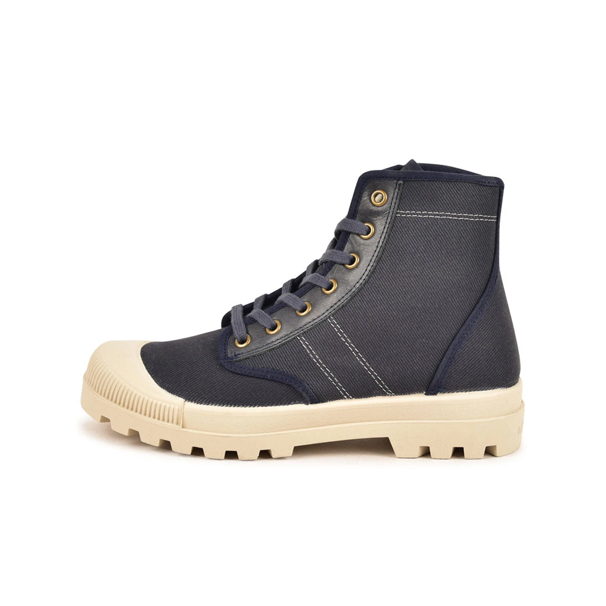 Cette saison notre Authentique a été pensée pour les jours pluvieux, est une édition limitée issue de notre capsule estivale SCOUT et directement inspirée par l’histoire de Pataugas. La doublure accueille un motif exclusif relatant l’aventure des 3 Etche tandis que la tige, en toile manufacturée en Angleterre depuis 1880, utilisée sur les vêtements de travail et la haute couture pour sa qualité, sa résistance et son haut pouvoir déperlant British Millerains, est conçue pour vous maintenir les pieds au sec, par tous les temps et par tous les chemins.
