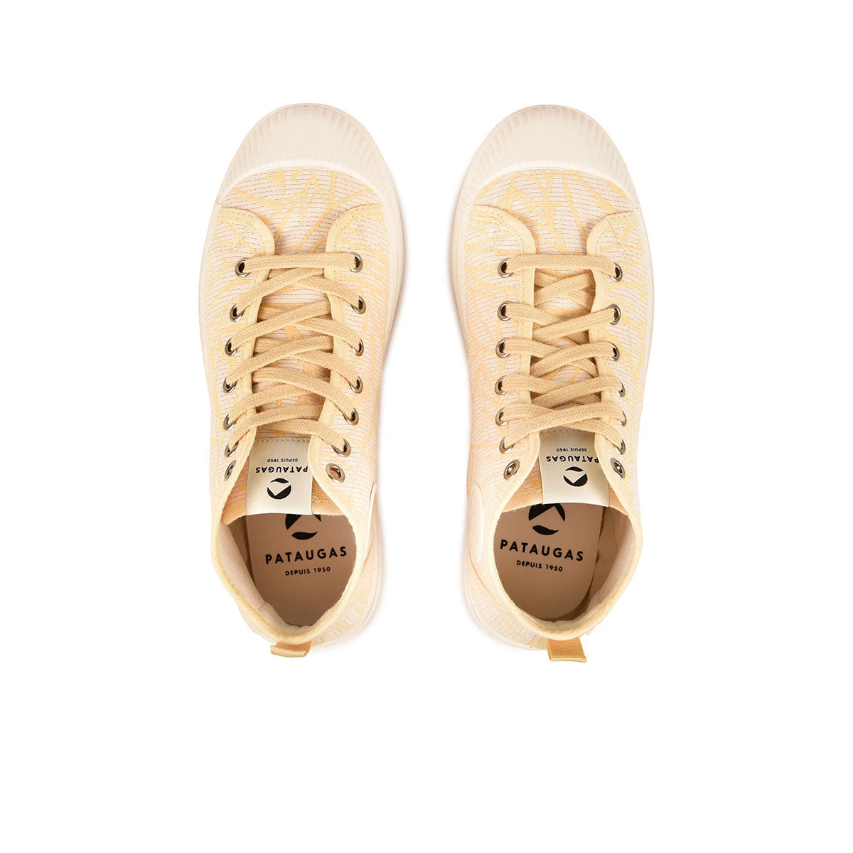 Revisitée cette saison, la basket montante femme ETCHE, est revêtue de sa plus belle toile Jacquard tissée en France coloris jaune. Ce tissu inspirée par les plages des îles paradisiaques est issue de notre travail avec le Studio Walkie Talkie. Toujours montée sur une semelle injectée et en caoutchouc naturel, saura vous séduire grâce à son confort et légèreté. Cette chaussure très originale elle s’accordera parfaitement avec toutes vos tenues estivales. Petit plus, sa semelle intérieure est amovible donc très pratique si vous souhaitez insérer vos propres semelles.