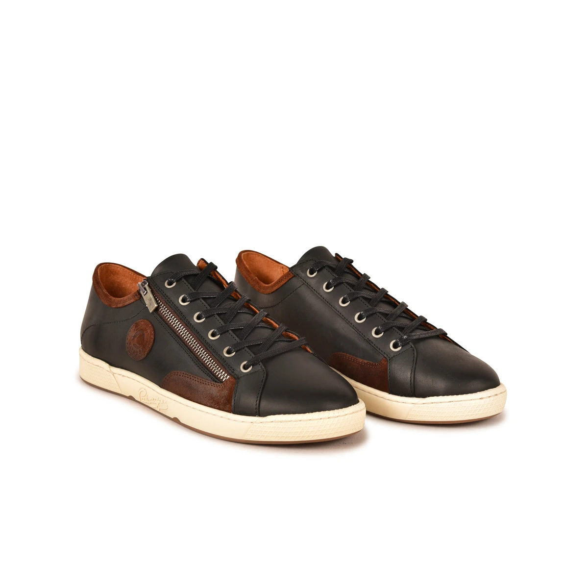 On ne vous présente plus le modèle JAY, véritable classique de la marque Pataugas. Cette basket pour homme revient cette saison avec une tige en cuir waxé couleur bleu marine. C’est un cuir qui a été nourri avec beaucoup d’huile ce qui donne un aspect gras au cuir et lui permet de résister plus facilement à la pluie. C’est une basket également pratique grâce à sa fermeture qui facilitera le chaussant.